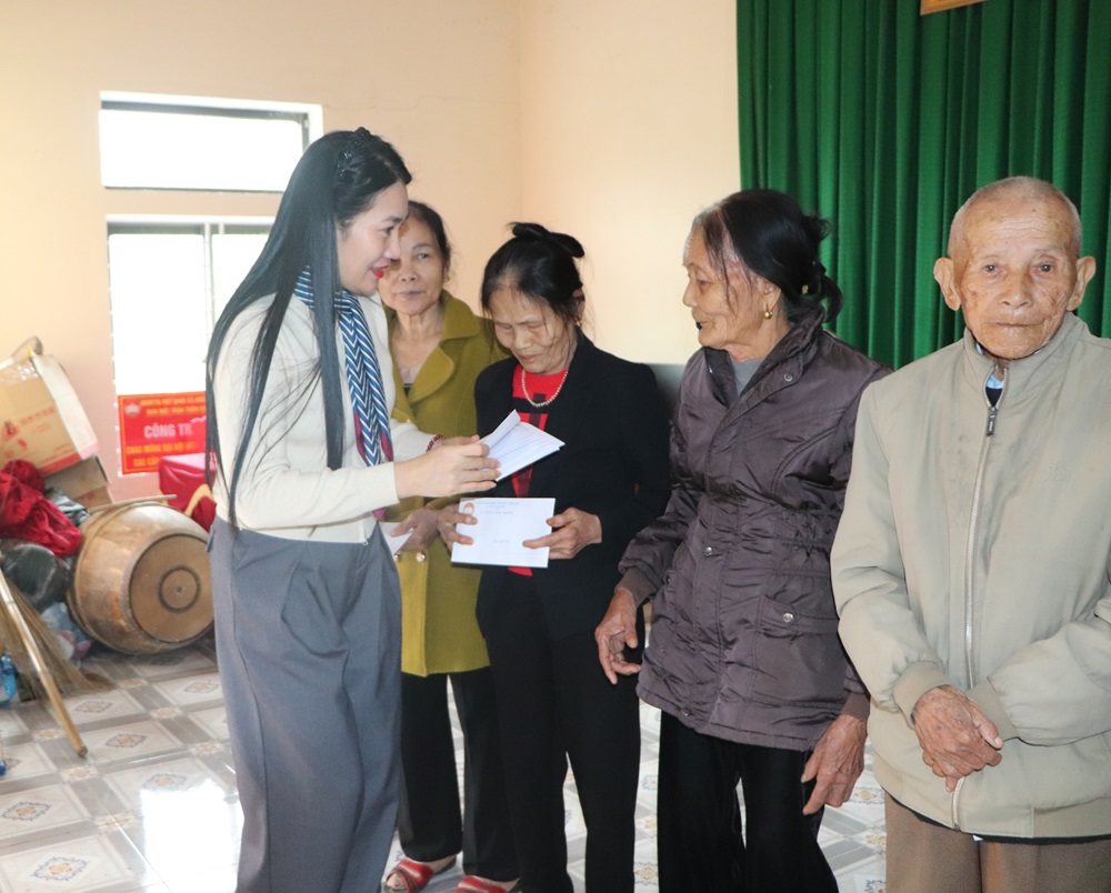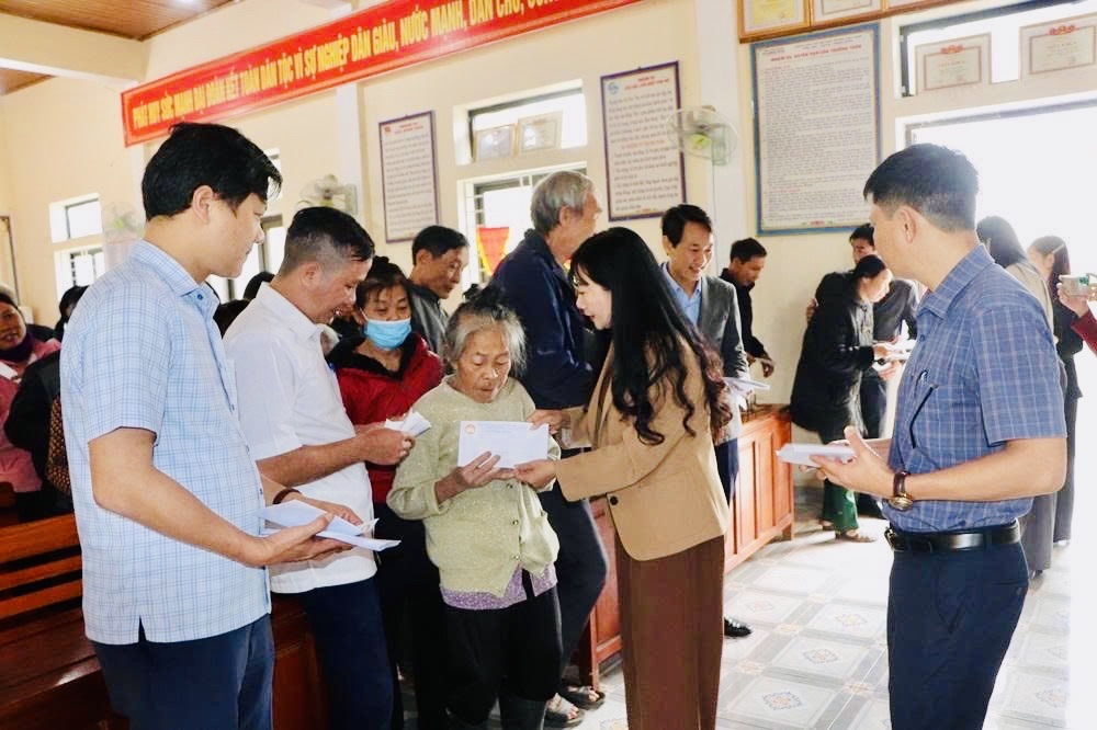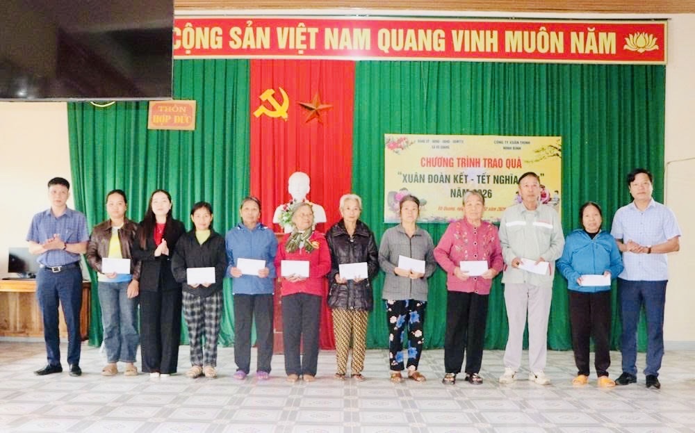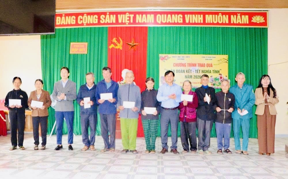 120 suất quà tết được trao tới hộ nghèo, hộ cận nghèo, hộ gia đình có hoàn cảnh đặc biệt khó khăn tại khu vực (Hương Minh củ) xã Vũ Quang.