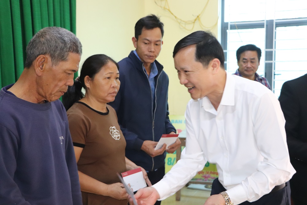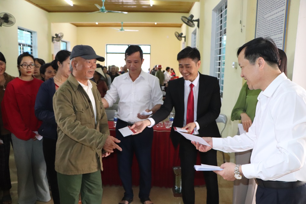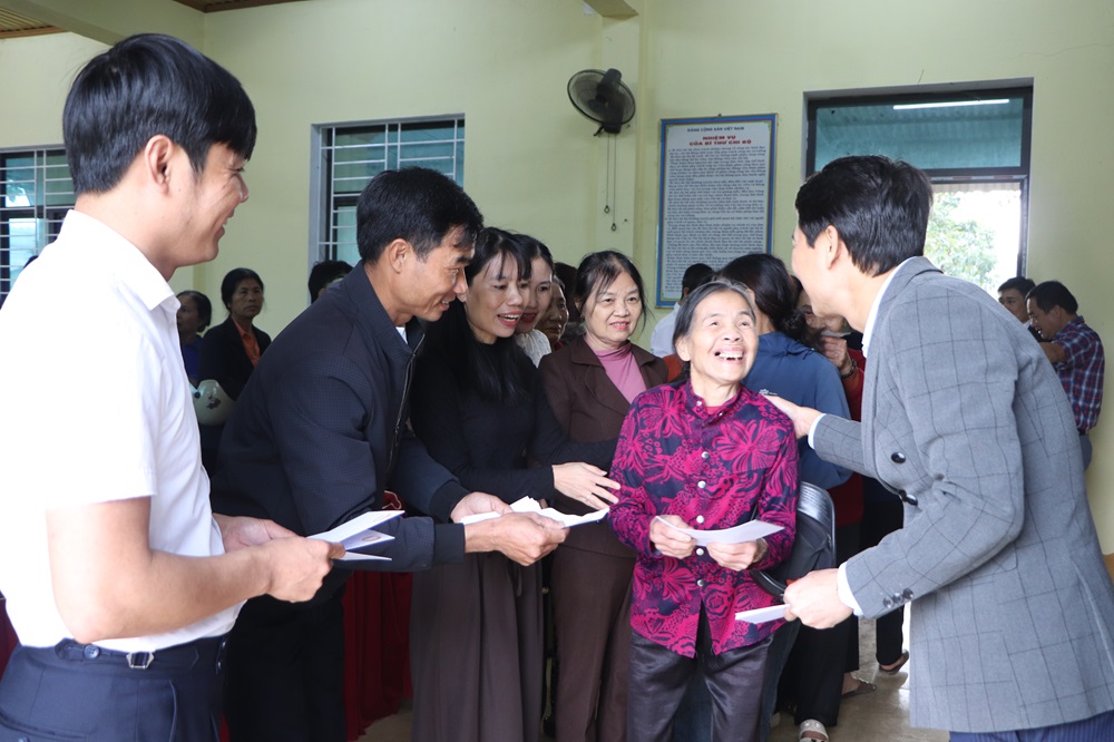 124 suất quà tết được trao tới hộ nghèo, đối tượng chính sách trên địa bàn các thôn ở Vũ Quang (thị trấn Vũ Quang củ) xã Vũ Quang