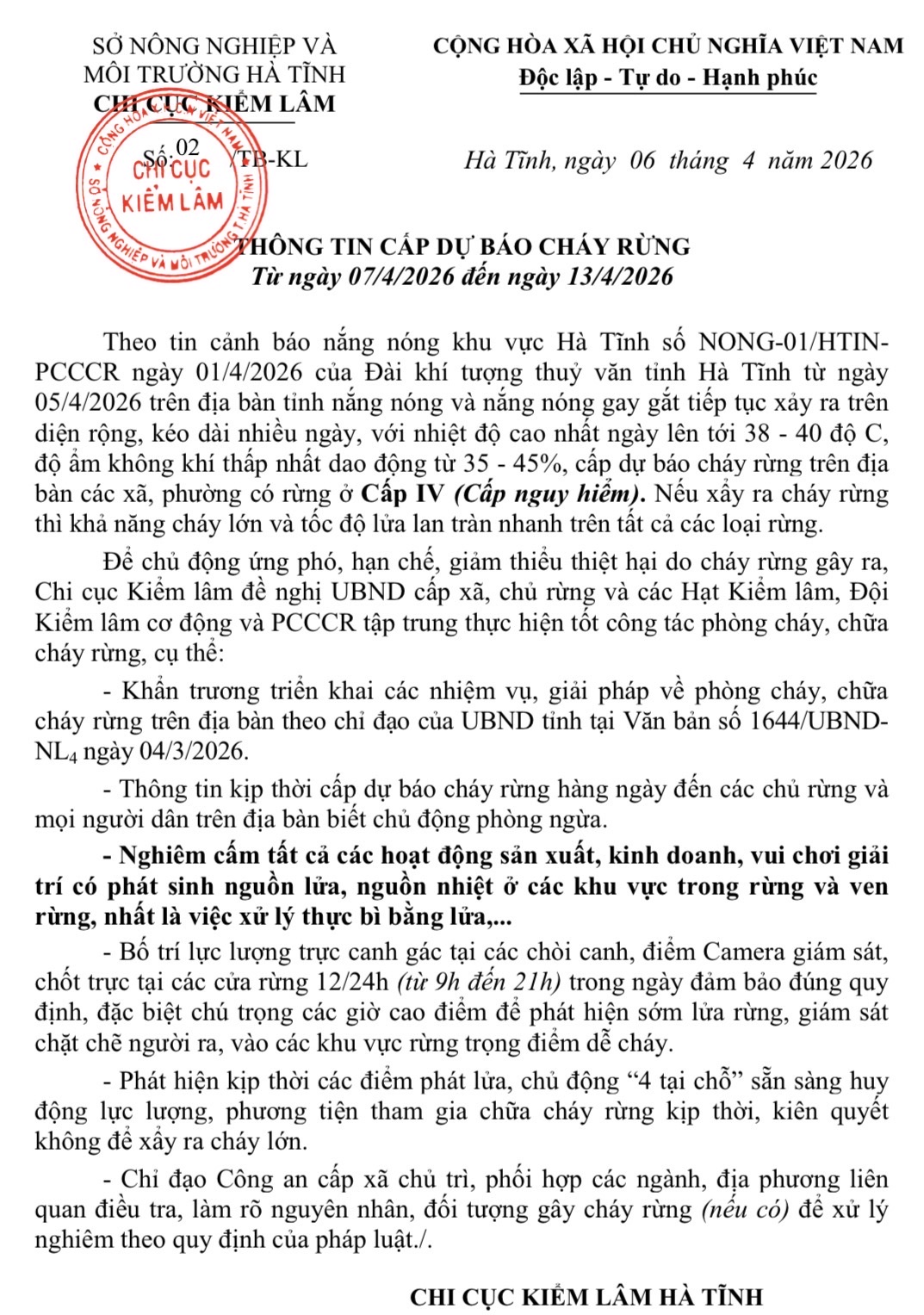 CẢNH BÁO CHÁY RỪNG TRONG NHỮNG NGÀY NẮNG, NÓNGĐức Thuận08/04/2026A -A+Đức Thuận08/04/2026A -A+CẢNH BÁO CHÁY RỪNG TRONG NHỮNG NGÀY NẮNG, NÓNG