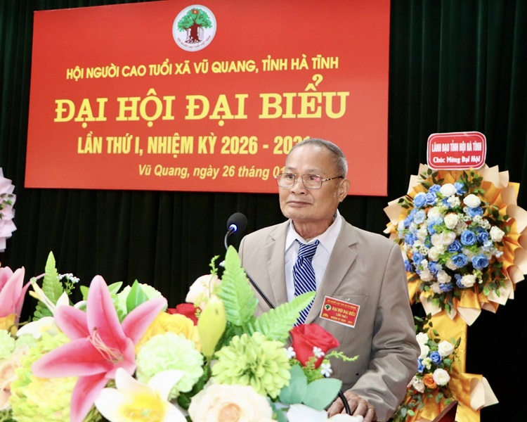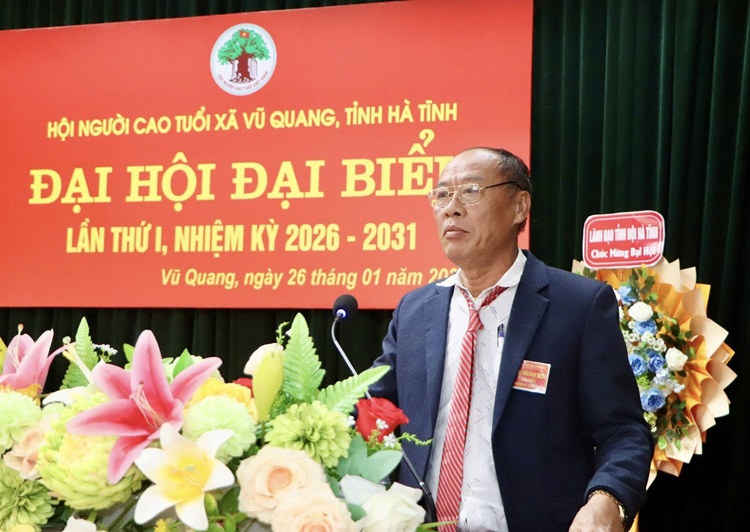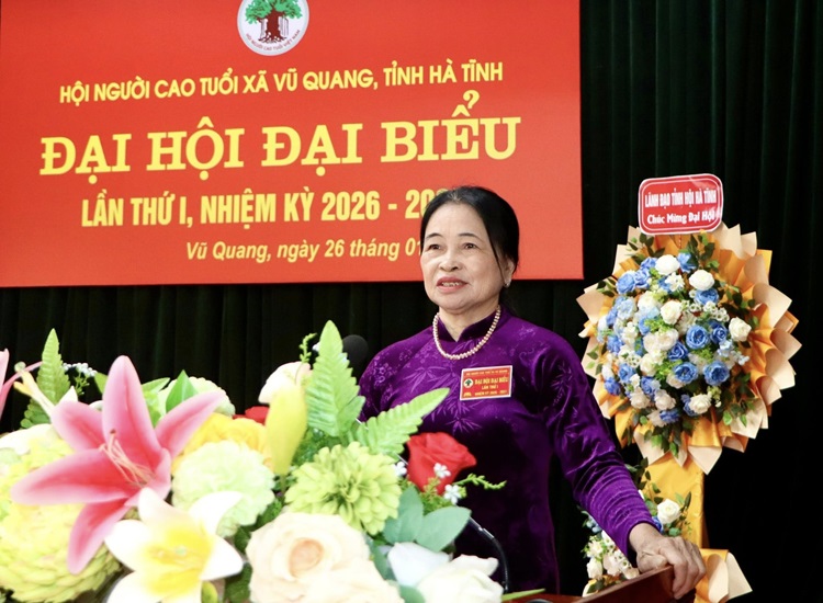 Sáng ngày 26/01/2026, Hội Người cao tuổi (NCT) xã Vũ Quang long trọng tổ chức Đại hội Đại biểu lần thứ I, nhiệm kỳ 2026 - 2031. Dự Đại hội có đồng chí Thái Sinh - Chủ tịch Hội Người cao tuổi tỉnh Hà Tĩnh; các đồng chí Phan Hồng Yến - Phó Bí thư Đảng ủy, Chủ tịch UBND xã; đại biểu lãnh đạo Ủy ban MTTQ xã, các đoàn thể và 81 đại biểu ưu tú đại diện 1.550 hội viên đang sinh hoạt ở 31 chi hội trên địa bàn xã.