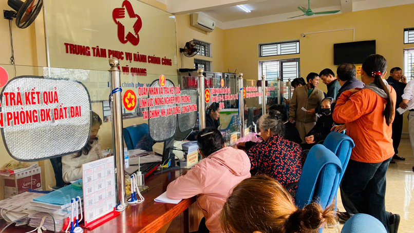 Người dân đến giao dịch thủ tục hành chính tại Trung tâm Phục vụ hành chính công xã Vũ Quang trong những ngày đầu năm 2026.