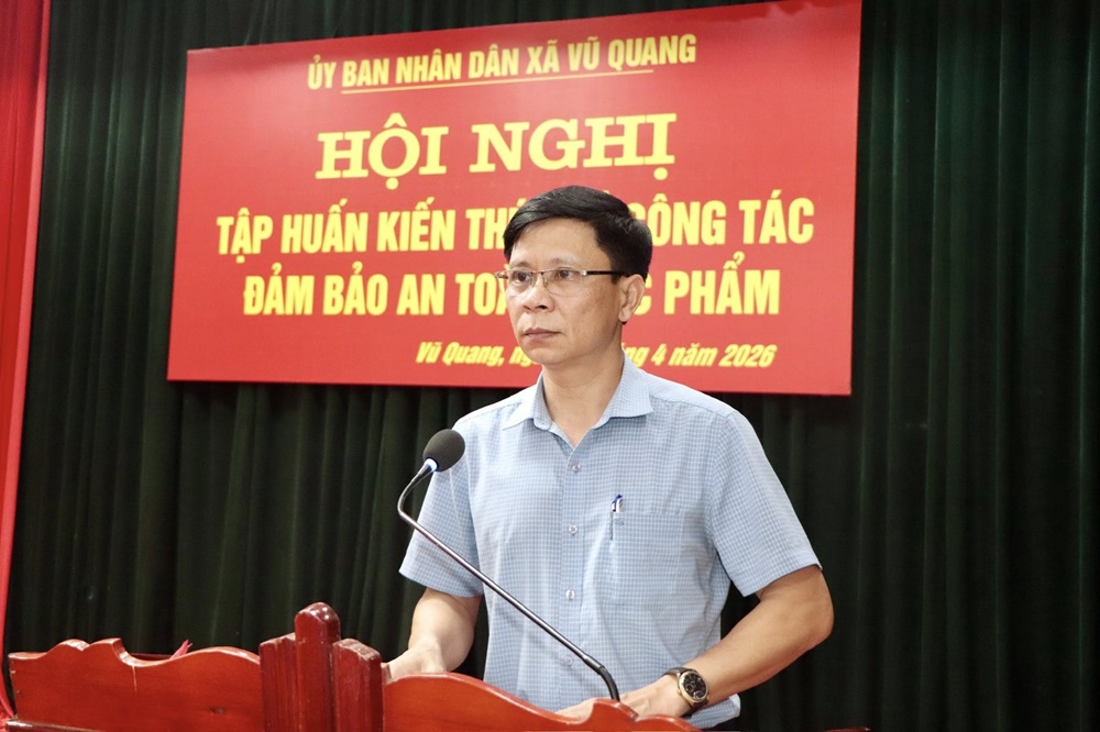 Chiều 23/4, UBND xã Vũ Quang tổ chức Hội nghị tập huấn cập nhật kiến thức an toàn thực phẩm cho đội ngũ cán bộ, đơn vị và các cơ sở sản xuất, kinh doanh thực phẩm trên địa bàn.