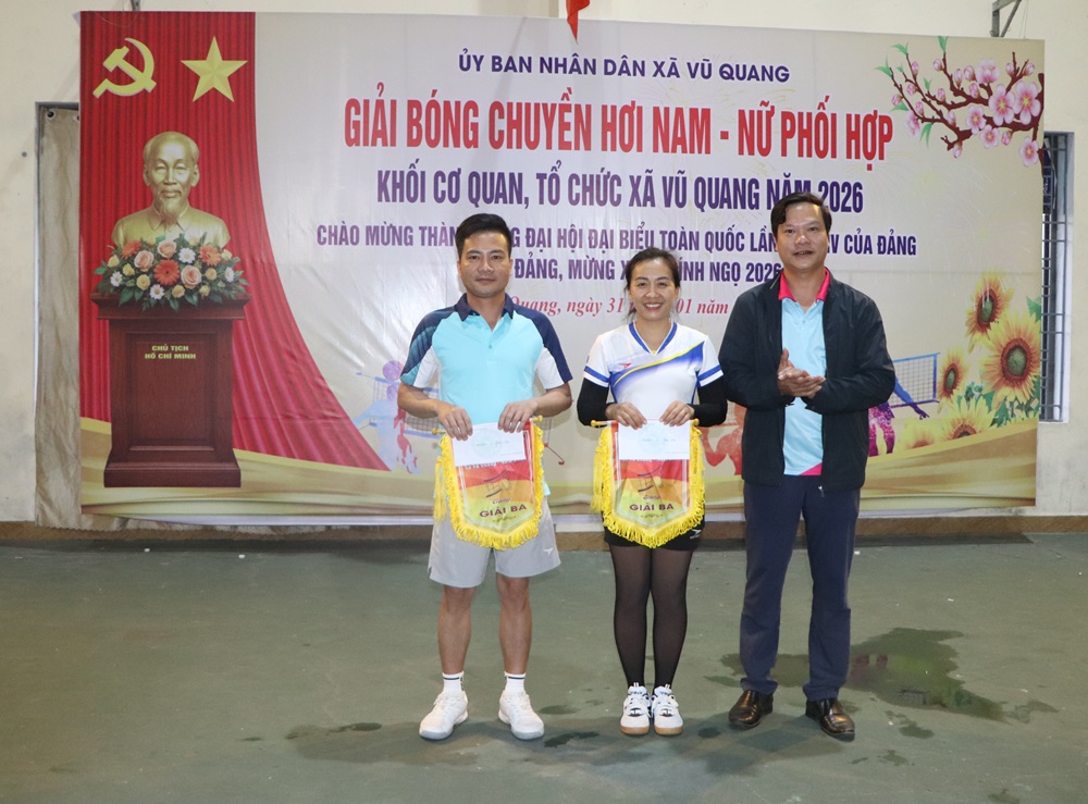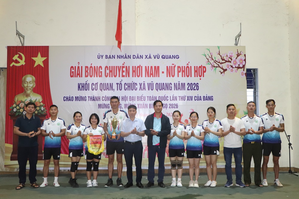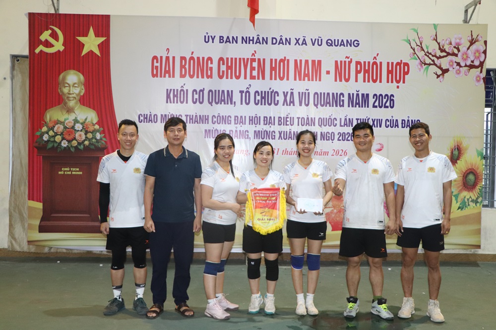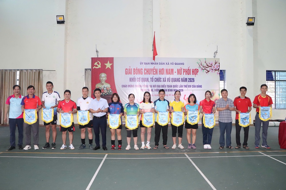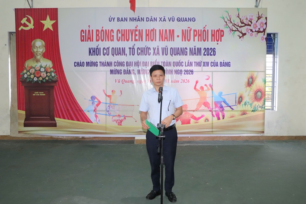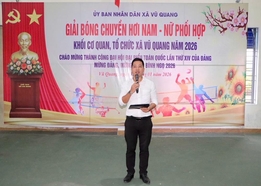 Ngày 31/01, UBND xã Vũ Quang tổ chức Giải bóng chuyền hơi Nam- Nữ khối cơ quan, tổ chức xã chào mừng kỷ niệm 96 năm Ngày thành lập Đảng Cộng sản Việt Nam (03/02/1930 - 03/02/2026); chào mừng thành công Đại hội đại biểu toàn quốc lần thứ XIV của Đảng; cuộc bầu cử đại biểu Quốc hội khóa XVI và đại biểu Hội đồng nhân dân các cấp nhiệm kỳ 2026 - 2031; mừng Đảng, mừng Xuân mới Bính Ngọ 2026.