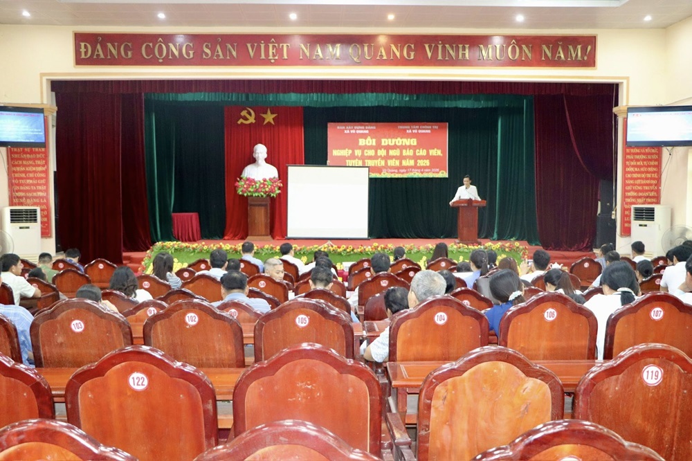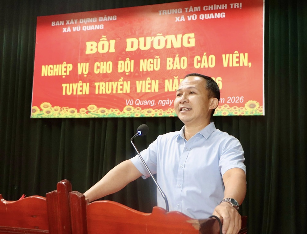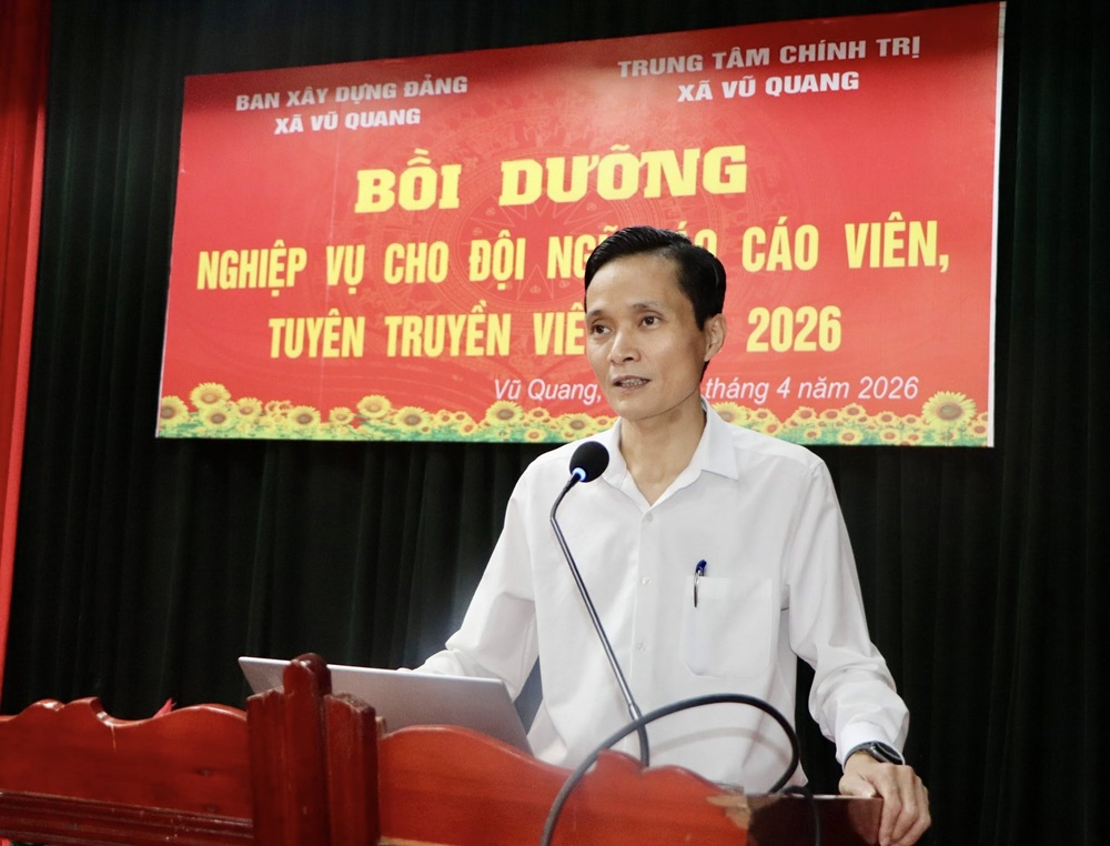 Chiều ngày 17/04, Trung tâm chính trị xã Vũ Quang phối hợp với Ban Xây dựng Đảng tổ chức Bồi dưỡng nghiệp vụ cho đội ngũ báo cáo viên, tuyên truyền viên năm 2026.