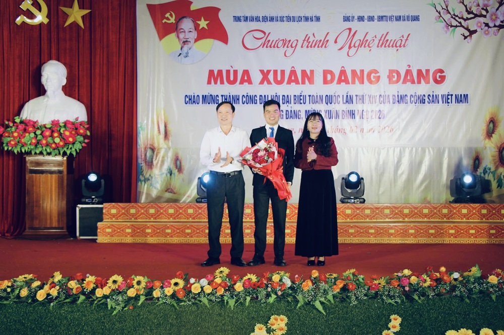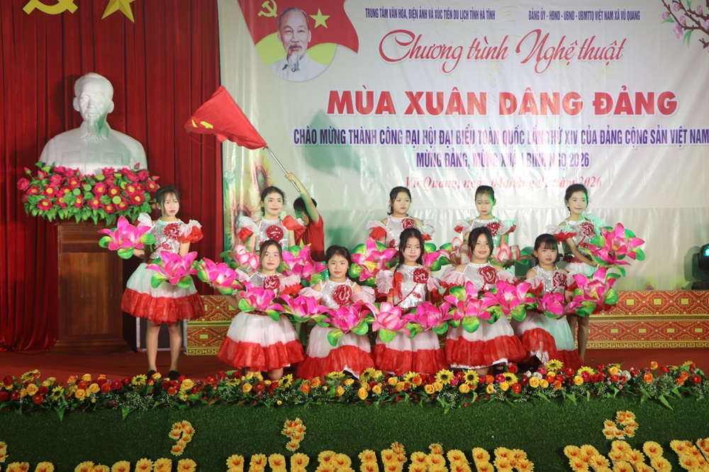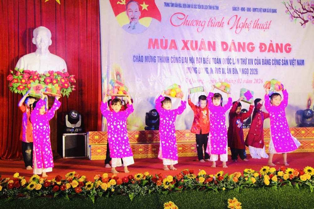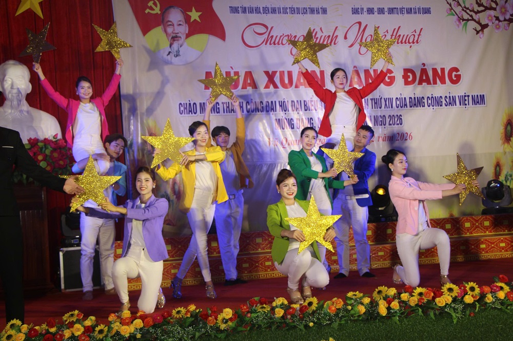 Tối ngày 04/02, hòa chung không khí phấn khởi, tự hào chào mừng kỷ niệm 96 năm Ngày thành lập Đảng Cộng sản Việt Nam (03/02/1930 - 03/02/2026), chào mừng thành công Đại hội đại biểu toàn quốc lần thứ XIV của Đảng và mừng Xuân Bính Ngọ 2026, xã Vũ Quang đã tổ chức thành công chương trình nghệ thuật chủ đề “Xuân ơn Đảng – Tết sum vầy”, thu hút đông đảo cán bộ và Nhân dân trên địa bàn đến xem và cổ vũ.