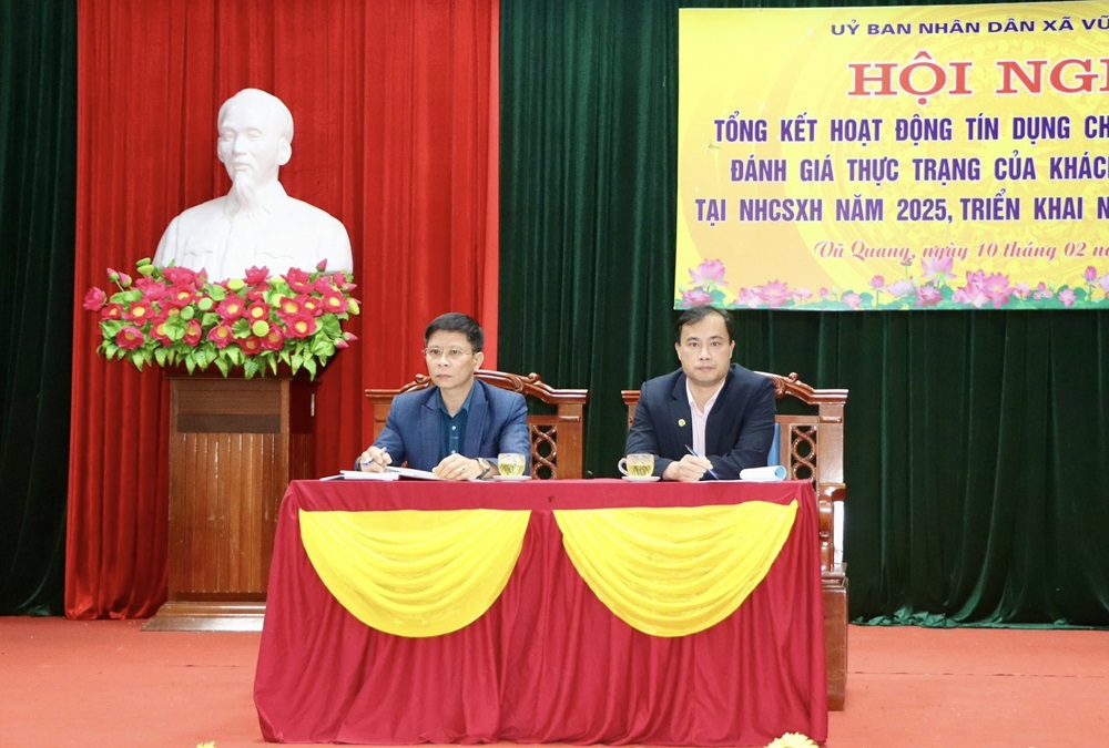 Chiều ngày 10/02, Uỷ ban nhân dân xã Vũ Quang tổ chức Hội nghị tổng kết hoạt động tín dụng chính sách xã hội và đánh giá thực trạng nợ của khách hàng vay vốn tại Ngân hàng Chính sách xã hội năm 2025.